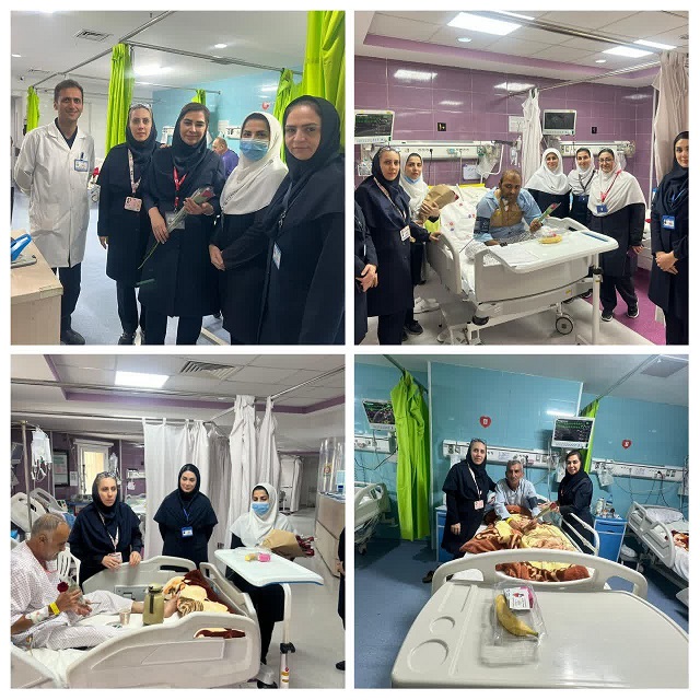 🔹در این بازدید صمیمی، ضمن تبریک این روز فرخنده، از تلاشهای شبانهروزی پرستاران در ارائه خدمات انسانی و حرفهای به بیماران تجلیل شد و با اهدای لوح تقدیر و هدایا از جمعی از پرستاران قدردانی بهعمل آمد.